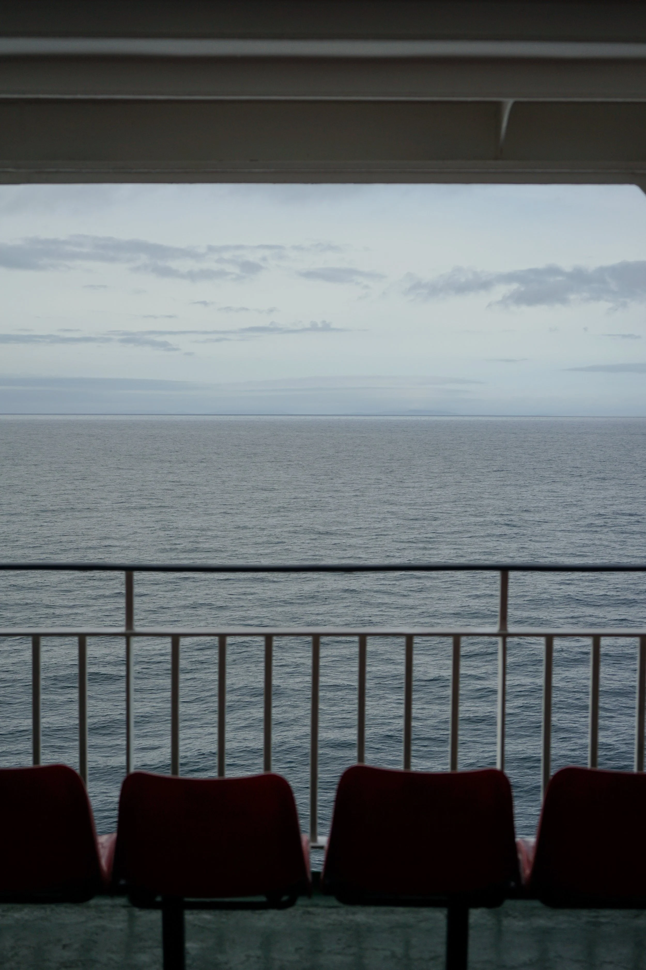 The rows of little red plastic seats gazing out to sea spark an unexpected wave of childhood nostalgia. The last time I was on a Caledonian-Macbrayne ferry, I was 6 or 7, on a family day trip to the Isle of Mull. I don’t remember much, only a wide sand beach strewn with pebbles, and spending the whole crossing gazing through white-painted railings at the water, half-afraid that I would slip through the gaps into the depths below.